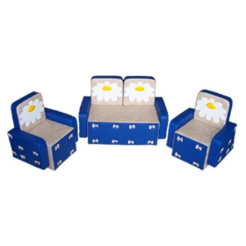 В комплекте: диван 1 шт., кресло 2 шт. Размеры: диван — 75*38*50 см., кресло — 45*38*50 см.