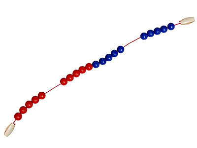 Бусины (шары) диаметром 20 мм красного и синего цветов изготовлены из пластмассы и нанизаны на прочную веревку по 5 штук подряд.