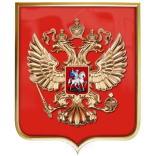 Герб России на щите из пластика — самый доступный вариант. Такие гербы прекрасно вписываются в кабинеты самых разных форматов: актовые залы, залы суда, кабинеты чиновников и руководителей любых уровней.