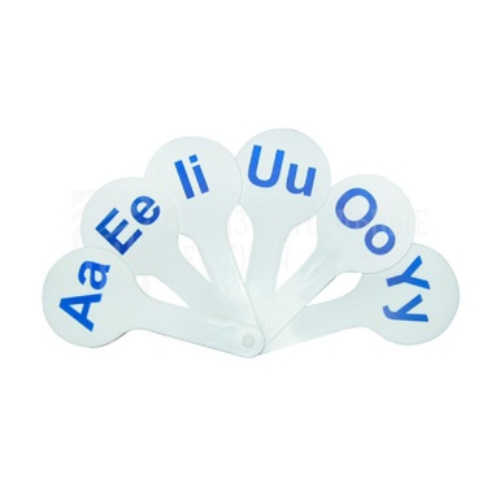 Изготовлена из пластмассы. Представляет собой комплект пластинок, соединенных аналогично соединению деталей веера, с буквами, обозначающими гласные звуки английского языка. Буквы выполнены крупным шрифтом и нанесены яркой краской.
