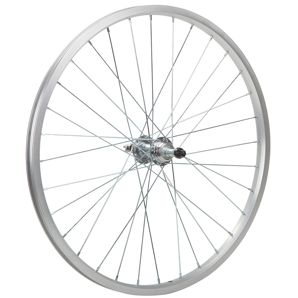 Благодаря использованию одинарного алюминиевого обода диаметром 24 дюйма заднее колесо становится легче и жёстче. Оно собрано на стальной втулке шириной 135 мм с насыпными подшипниками, 32 спицах и ниппелях длиной 12 мм. Колесо подходит для скоростных велосипедов с ободными тормозами. На втулке с правой стороны предусмотрена резьба, на которую устанавливается блок звёзд (трещотка). Колесо крепится к раме с помощью эксцентрика, что позволяет быстро устанавливать/снимать колесо