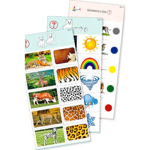 Пособие состоит из 10 полноцветных, напечатанных на картоне и ламинированных пленкой карточек. Является частью игрового набора "Обучающий калейдоскоп для дошкольного образования".