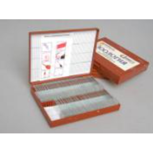 Препараты обработаны консервантами, смонтированы на предметных стеклах, закрыты покровными стеклами. Каждый препарат маркирован этикеткой с номером и названием на русском и английском языках. Комплект микропрепаратов уложен в закрывающуюся на замочек коробку с подписанными ячейками.