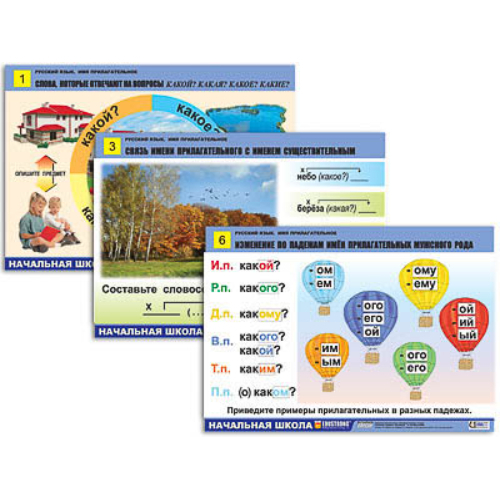 Комплект таблиц для нач. шк. «Русский язык. Имя прилагательное» (12 табл., формат А1, лам.)