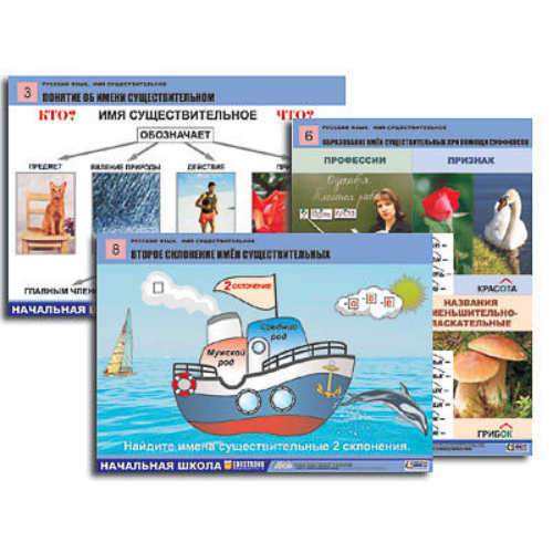 Таблицы: 1. Слова, которые отвечают на вопросы КТО? ЧТО? 2. Связь слов в предложении. 3. Понятие об имени существительном. 4. Число имен существительных. 5. Род имен существительных. 6. Образование имен существительных при помощи суффиксов. 7. Первое склонение имен существительных. 8. Второе склонение имен существительных. 9. Третье склонение имен существительных. 10. Изменение имен существительных по падежам. 11. Падежи и предлоги. 12. Морфологический разбор имени существительного.