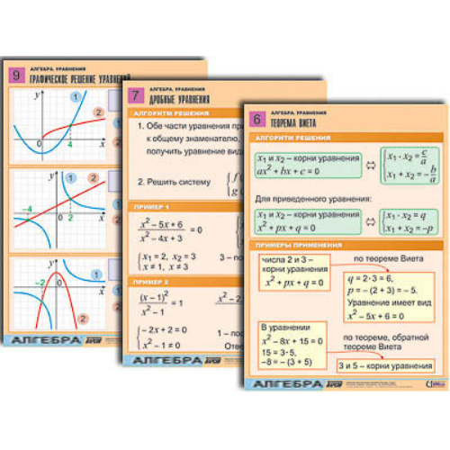 Комплект таблиц по алгебре «Алгебра. Функции, их свойства и графики» (8 табл., формат А1, лам.)