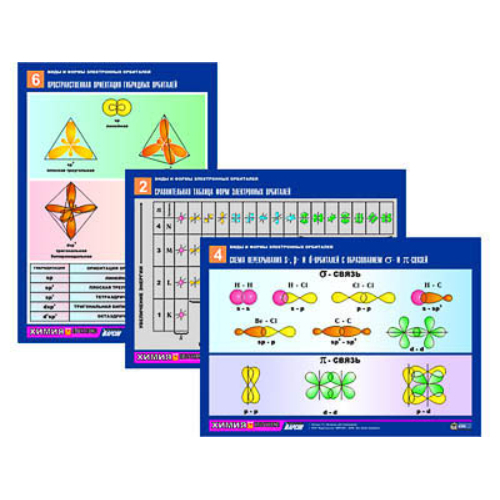 Перезвоните мнеКомплект таблиц по химии раздаточных «Виды и формы электронных орбиталей» 6 шт.