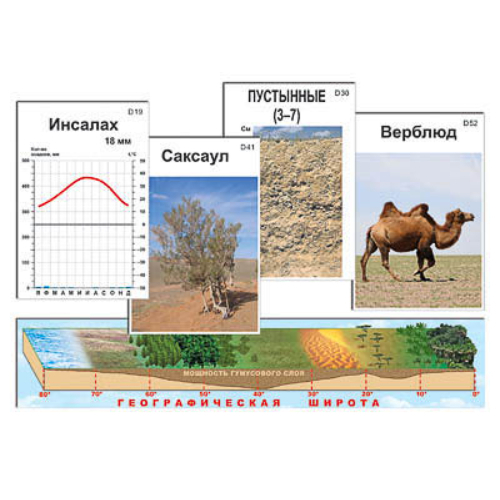 Пособие предназначено для использования в качестве демонстрационного материала на уроках географии при изучении тем, посвященных природным зонам.