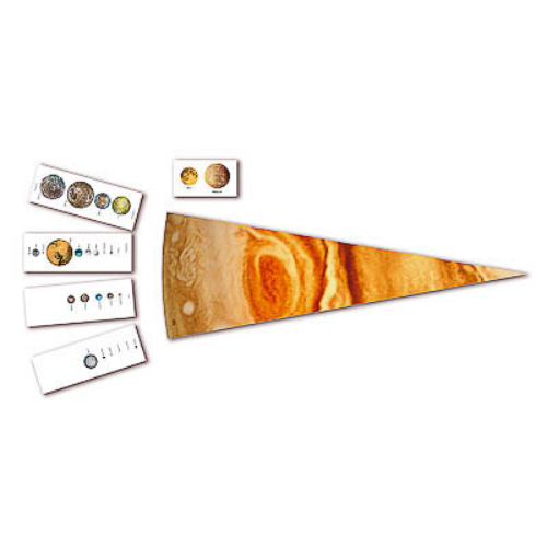 Комплектность: карточка с изображением сектора Солнечного диска – 1 шт., карточка с изображением сектора диска Юпитера – 1 шт., карточка с изображениями планет земной группы: Меркурия, Венеры, Земли и Марса – 1 шт., карточка с изображением Юпитера – 1 шт., карточка с изображением Сатурна – 1 шт., карточка с изображением Урана – 1 шт., карточка с изображением Нептуна – 1 шт., карточки с изображением веса человека на разных планетах – 4 шт., карточка с изображением Меркурия и Луны – 1 шт., карточка с изображениями спутников Юпитера – 1 шт., карточка с изображениями спутников Сатурна – 1 шт., карточка с изображениями спутников Урана – 1 шт., карточка с изображениями спутников Нептуна – 1 шт., руководство по эксплуатации с методическими рекомендациями – 1 шт.