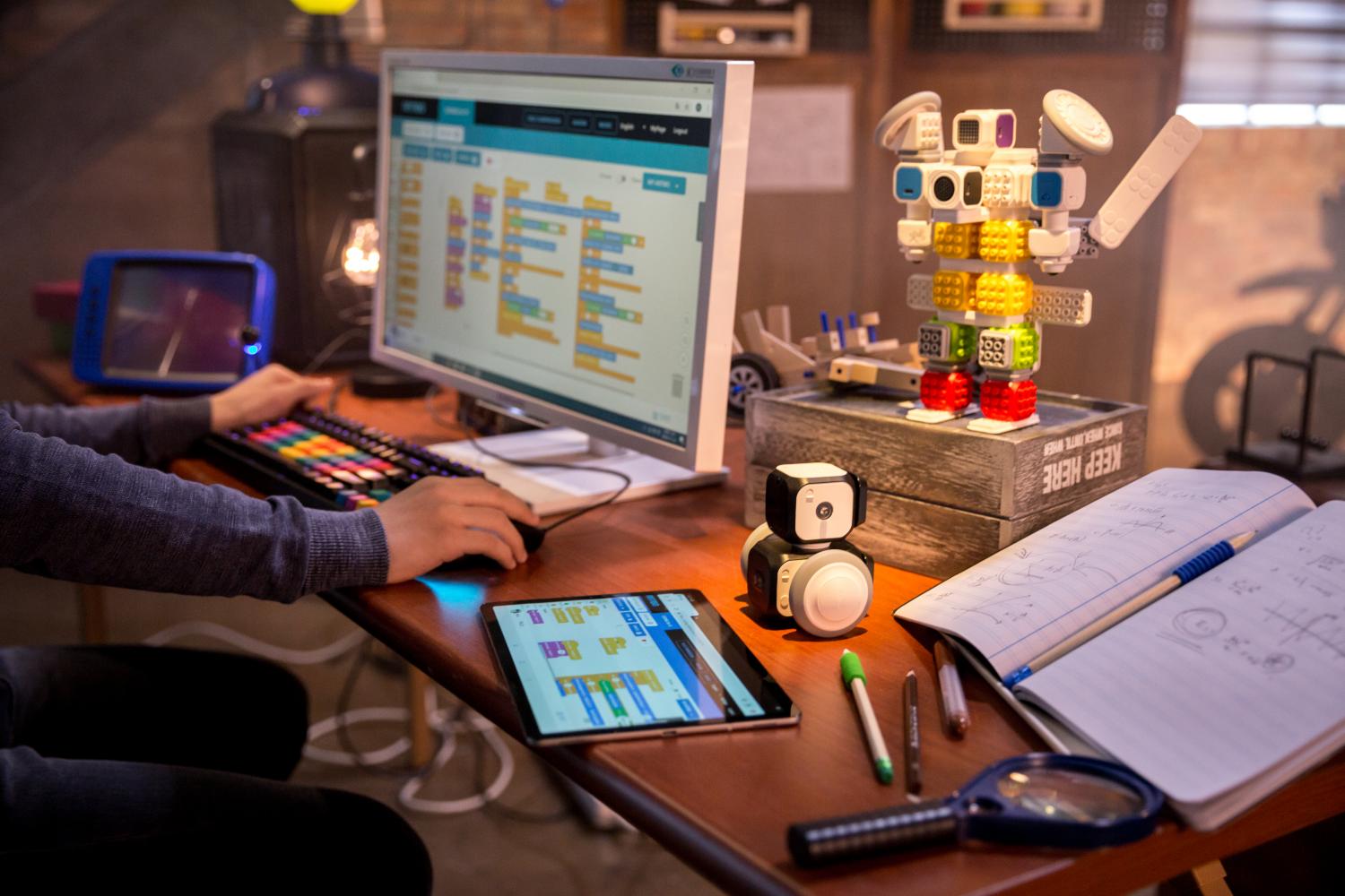 Набор для изучения углубленного программирования с искусственным интеллектом подходит для детей от 10 лет. Благодаря наличию ИИ робот имеет возможность: — распознавать и воспроизводить речь на нескольких языках — воспроизводить музыкальные мелодии — распознавать голосовые команды — распознавать лица — показывать свои эмоции Состав: «Голова» робота: — Камера (Есть функции распознавания объектов, распознавания написанного текста, распознавания лиц (Возраста, настроения или пола)) — Дисплей (Для вывода текста или «Эмоций») — Микрофон (Используется для ввода текста, так же робот умеет переводить с одного языка, на другой) — Динамик (Робот умеет произносить текст на нескольких языках (В том числу и русском), может выводить звуки) Цели набора: 1) Изучение современных программируемых роботов с искусственным интеллектом, программирования и различных систем включенных в робота. 2) Развитие творческих и аналитических способностей обучающихся. Задачи набора: 1) Изучить графический язык программирования. 2) Освоить основы программирования, составление алгоритмов; 3) Развить алгоритмическое мышление; 4) Освоить объектно-ориентированную среду программирования; 5) Усвоение основ робототехники 6) Развить интерес к техническому творчеству, выполняя сложные задачи по программированию; 7) Обучить принципам работы ИИ, через пример работы ИИ робота. 8) Изучить принцип ввода-вывода речи, используя несколько языков. 9) Изучить принцип работы систем ввода и анализа изображений. 10) Изучить принципы передвижения робота в пространстве, включая анализ препятствий. 11) Развить общеучебные навыки, связанные с поиском, обработкой информации и представлением результатов своей деятельности; Совместим с конструктором "Конструктор для изучения 4-х языков програмирования Cubroid Coding Block арт.1D-111