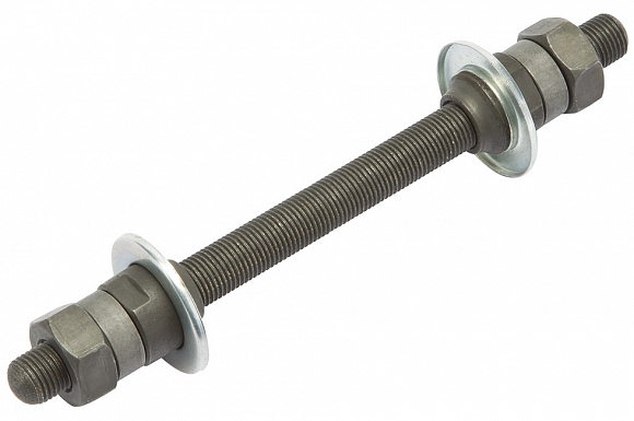 Ось передней втулки, диаметр 9мм, длина 140 мм, под гайку, в комплекте с гайками, шайбами и конусами