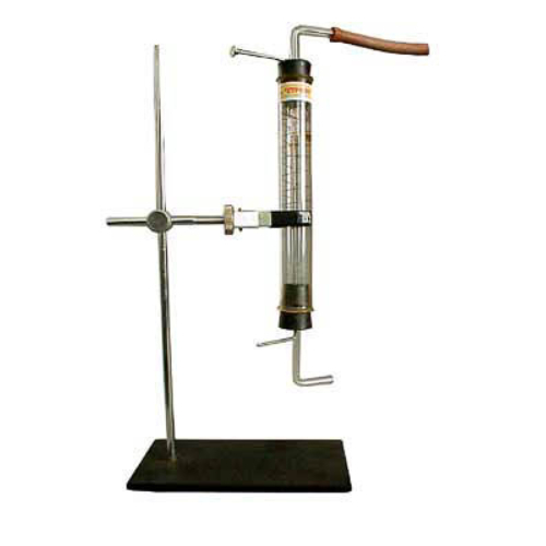 Прибор состоит из стеклянной трубки со вставленными резиновыми пробками, через которые пропущены газоотводные трубки и электроды (центральный стержень и проволочная спираль).