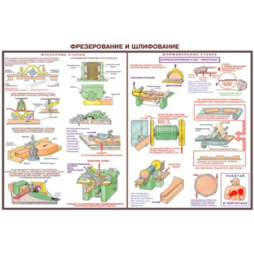 Комплектность: «Пиление древесины на станках, электроинструментом и ручными пилами», «Строгание на фуговальном и рейсмусовом станках, а также электрическим и ручным рубанком», «Правила безопасной работы на долбежных и сверлильных станках, обработки древесины долотом и стамеской», «Фрезерные и шлифовальные станки», «Пожарная безопасность при деревообработке и складирование пиломатериалов».