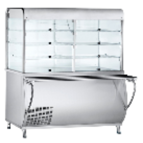 Температура воздуха полезного объема витрины +4…+10 °С, камеры +1…+10 °С. Хладагент: R404a. Полезный объем 1,08 м3. Прилавок-витрина оборудована полками, подсветкой, регулируемыми по высоте ножками и направляющими для подносов.