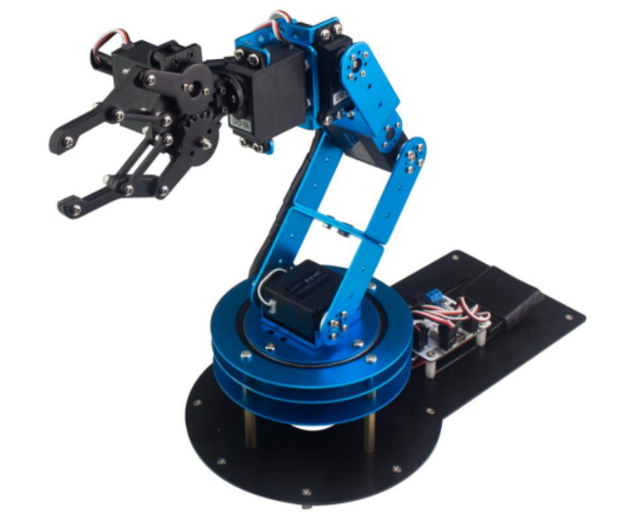 Общие сведения: Роботизированный манипулятор с 6 степенями свободы. Детали выполнены из прочного алюминиевого сплава. В комплекте есть джойстик и устройство захвата. Набор подойдет для одновременной работы одного-двух учеников в возрасте от 12 лет. Программирование осуществляется с помощью компьютера, ноутбука или телефона. Непосредственное управление моторами поможет ученикам настроить работу манипулятора без особых навыков и умений в программировании, изучить основные принципы управления манипулятора и сразу увидеть результат своей работы. Изучение данного набора позволит изучить язык программирования С++ в интересной форме.Возможности набора: В интересной форме познакомятся с устройством манипулятора; Изучат принципы работы моторов и датчиковНаучатся программировать манипулятор через непосредственное управление углами поворотов мотораПознакомятся со сферами применения манипуляторовИзучить основы программирования и мехатроникиУровни обучения: Исследовательский уровень — знакомство с управлением многокомпонентными системами в текстовых языках программирования, изучение физических принципов работы манипуляторов, научить ориентироваться в пространстве, перемещать объекты в автоматическом режимеПродвинутый уровень — знакомство со сложной кинематикой манипуляторов, основы тригонометрии, углубленное изучение текстовых языков программирования (Расчет траектории движения захвата, массивы данных)