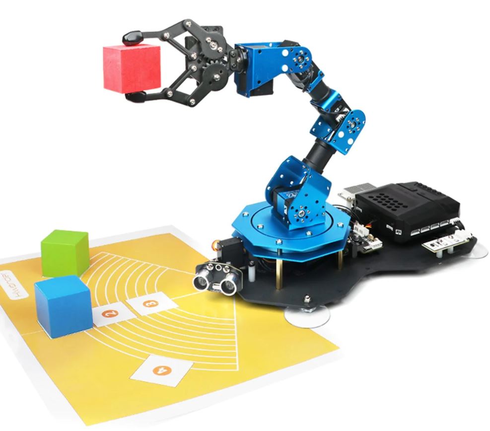 Общие сведения: Расширенный комплект роботизированного манипулятора предназначен для углубленного изучения мехатроники, механики, физики и манипуляционных действий. Имеет три варианта программирования Scratch, Python и непосредственное управление моторами. Подходит для школы, техникумов и вузов. Функция распознавания цвета и расстояния. Различные варианты управления – ручное управление, джойстик, управление с помощью ПК, управление с телефона. Программирование осуществляется с помощью компьютера, телефона или в ручном режиме (без дополнительных устройств). Есть возможность программировать в 2 программах: Непосредственное управление моторами происходит путем добавления контрольных точек или углов сервоприводов друг за другом. Есть возможность воспроизведения отдельной строчки из всей программы, а также добавления бесконечного повторения.Программирование блоками – этот способ позволяет выстраивать цепочку из блоков последовательно друг за другом. Получается своего рода последовательность блоков. Возможности набора: изучить принципы работы моторов и датчиков научиться программировать манипулятор в трех средах: непосредственно управляя моторами, блочное программирование и текстовое программирование познакомиться со сферами применения манипуляторов обучиться основным принципам работы манипуляторов; освоиться объектно-ориентированную среду программирования; обучиться составлению программы для управления механизмом; развить логическое мышление обучающихся развить умение выстраивать гипотезу и сопоставлять с полученным результатом; развить образное техническое мышление и умение выразить свой замысел; формировать навыки проектного мышления, работы в команде, эффективно распределять обязанности. изучение деталей манипулятора и их назначения, таких как захват, рычаги, оси; возможность изучения трех языков программирования; возможность программировать с компьютера, ноутбука или телефона возможно совмещать с другими наборами, создавая автоматические производственные линии Уровни обучения: Базовый уровень — знакомство со scratch программированием, изучение принципов работы датчиков Исследовательский уровень — знакомство с управлением многокомпонентными системами в текстовых языках программирования, изучение физических принципов работы манипуляторов, ориентирование в пространстве, обнаружение и перемещение объектов в автоматическом режиме.Продвинутый уровень — знакомство со сложной кинематикой манипуляторов, основы тригонометрии, углубленное изучение текстовых языков программирования, расчет траектории движения захвата, массивы данных.