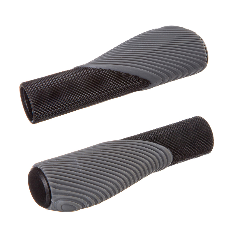 Эргономичные Грипсы STG HL-G303-1, бюджетные и комфортные — имеют дополнительные упоры под ладони, черно-серого цвета и выполнены из износостойкой резины, длина 135 мм. В комплекте идут пластиковые заглушки в торцы руля