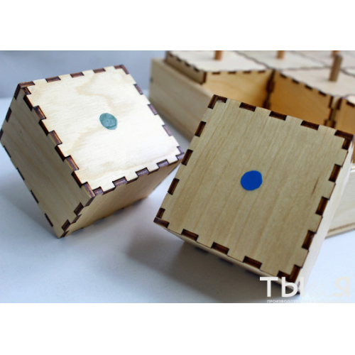 Внутри каждой коробочки наполнитель – шумовой элемент, на нижней части каждой коробочки- цветовой маркер.