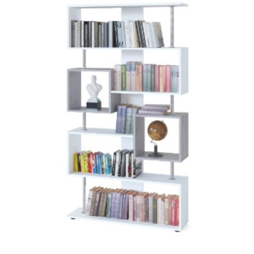Широкий открытый стеллаж многофункционального назначения. Модель имеет большое количество открытых полочек и два закрытых шкафчика на разной высоте. Необычная геометрия привлекает внимание благодаря металлическим стоевым между полками, которые придают легкость конструкции — полочки будто парят в воздухе. Стеллаж не будет зрительно нагружать помещение и станет стильным элементом меблировки гостиной, спальни или даже детской комнаты. Высота больших и средних отделений — 340 мм. Ширина больших отделений — 988 мм. Ширина средних отделений — 592 мм. Размеры шкафчиков (ВхШ) — 328 х 364 мм.