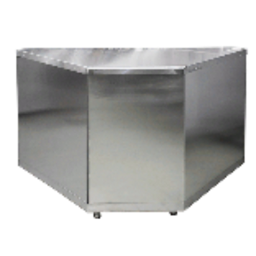 Стол поворотный внутренний служит в качестве нейтрального стола, имеет угол поворота 90° и предназначен для формирования изгиба в структуре линии раздачи. Корпус стола изготовлен из нержавеющей стали, высота регулируется опорами.