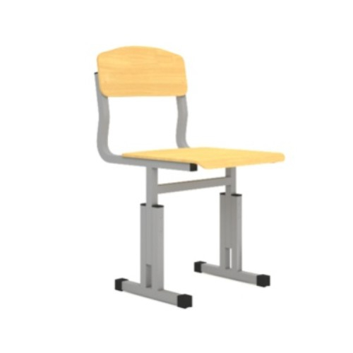 Каркас – сварной, из металлической трубы квадратного сечения 20х20 и 25х25 мм, с толщиной стенки 1,5 мм. Покрашен полимерно-порошковой краской, цвет – светло-серый. Все торцы каркаса закрыты пластиковыми заглушками, ножки снабжены пластиковыми подпятниками. Высота каркаса стула регулируется с помощью телескопического соединения ножек на 3 фиксированных положения.Сиденье, спинка стула для школы изготавливается из гнуто-клееной фанеры, имеют эргономическую форму и покрыты износостойким матовым лаком в 3 слоя. Сидение и спинка крепятся к каркасу стула при помощи болтового соединения, что позволяет со временем, легко произвести частичную замену отдельных элементов.