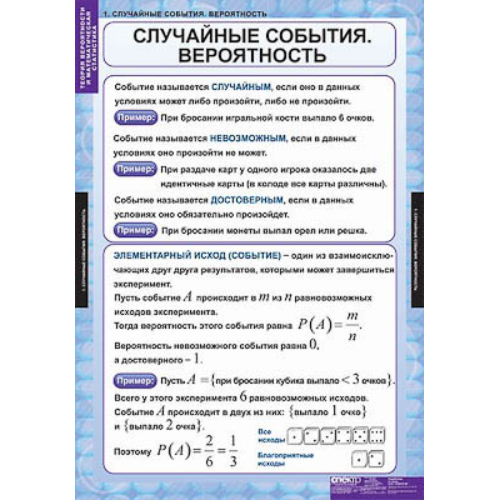 Случайные события. Вероятность. Вычисление вероятностей. Независимые события. Формула Бернулли. Математическое ожидание и дисперсия. Закон больших чисел. Нормальный закон распределения. Генеральная совокупность и выборка.