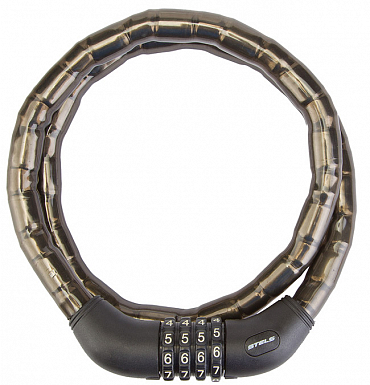 Трос-замок 81601, 18×1000 мм, с кодовым замком со стальными звеньями, чёрный