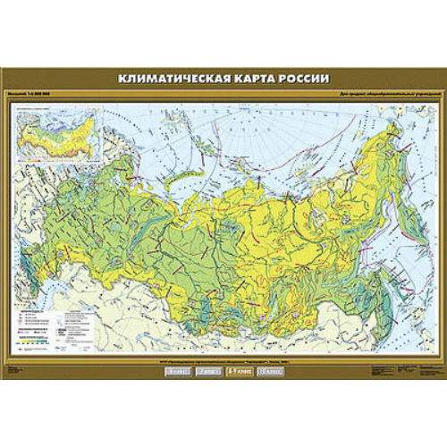 Линиями и цифрами на карте изображаются изотермы июля и января, абсолютный максимум и минимум температур. Фоном обозначается годовое количество осадков, линейным знаком – линии равного количества осадков.