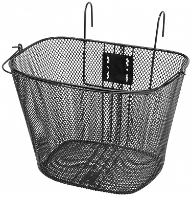 Велокорзина JL-045-1 передняя стальная чёрная, размер 35х25х26,5см, с возможностью крепления на руль или со стойками для 28" с креплением за ось втулок