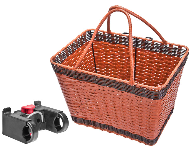 Велокорзина JL-106 передняя универсальная, с быстросъёмным креплением, с ручками для переноски, плетёная, материал сталь/пластик, коричневая