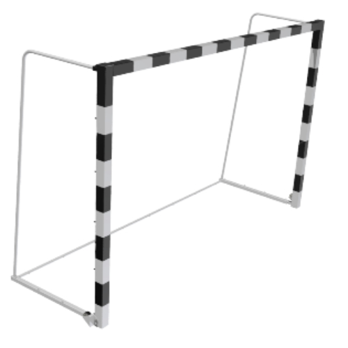 Ворота мини-футбольные изготавливаются из металлической профильной трубы 80х80 мм, окрашенной полимерно-порошковой краской, устойчивой к воздействию неблагоприятных погодных условий и ультрафиолета. Длина 3160 мм, высота 2430 мм, глубина 1000 мм. Высота стакана 350 мм