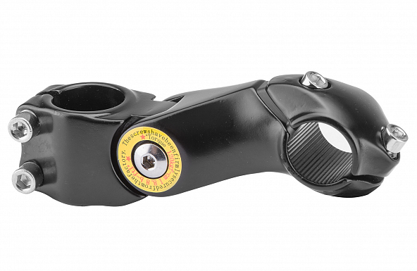 Вынос руля DTS-266 для безрезьбовой рулевой колонки с регулировкой наклона выступа, под шток вилки 1-1/8", длина выступа 105 мм, для руля диаметром 25,4мм, алюминиевый, чёрный